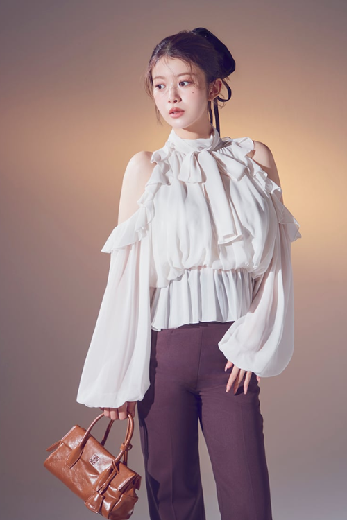 フリルやレースなどでフェミニンさを出しつつ、甘くなりすぎないようカラーやシルエットで大人っぽさをプラス。