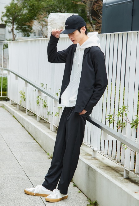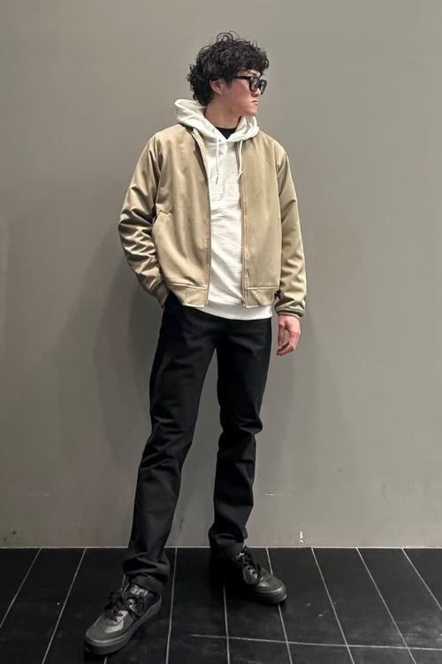 コンパクトなシルエットのブルゾンをあわせれば、パーカーもスタイリッシュにまとまりますね。