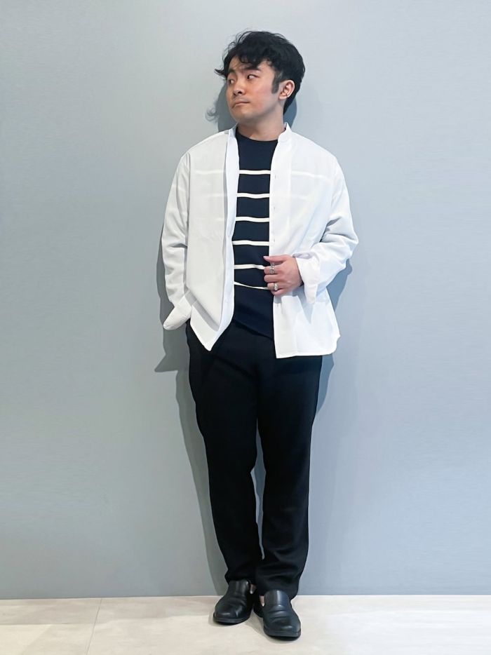 こちらの例では、清潔感ある白シャツに黒のパンツをあわせてシンプルだけど洗練された着こなしです。