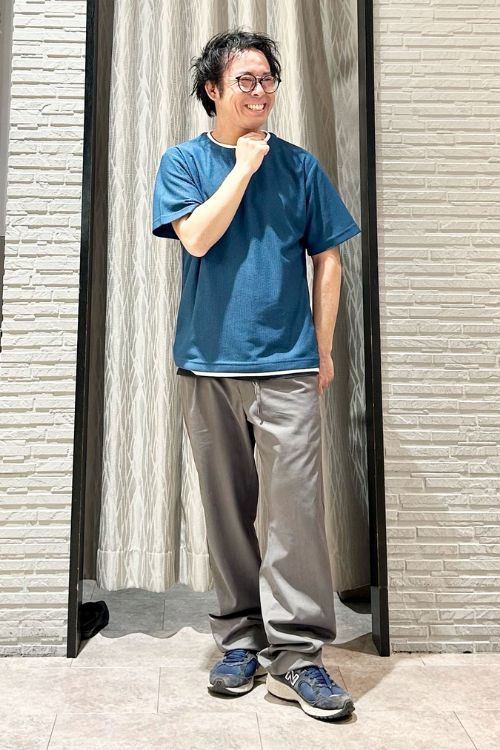 キーネック+重ね着風のTシャツは、1枚で着てもおしゃれに見えるディテールへのこだわりが感じられます。