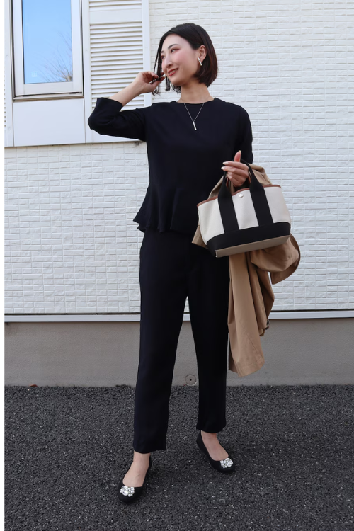 バッグをアクセントとして持つのもおすすめですが、あえてコーデに溶け込ませてみるのもぜひ挑戦してみたいスタイルです。