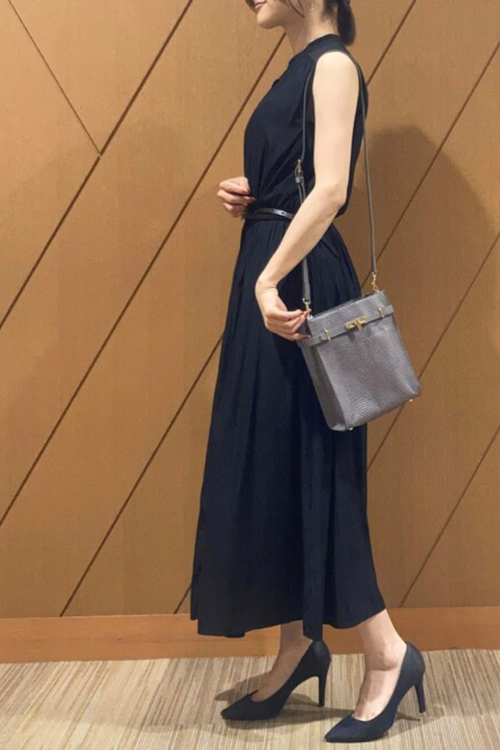 ドレスシーンには華奢さを表現できる細めのストラップのショルダーバックで、上品さと華やかさも演出。