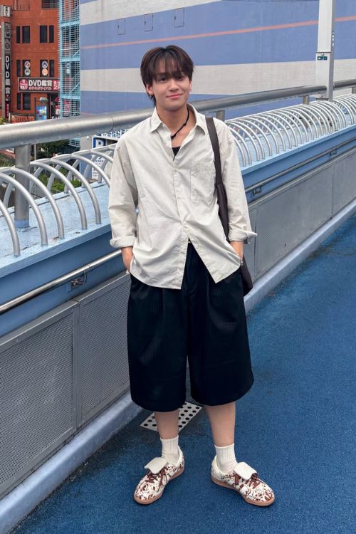 ベーシックなシャツにハーフパンツとスニーカーをあわせた抜け感あるコーデも参考になりますね。